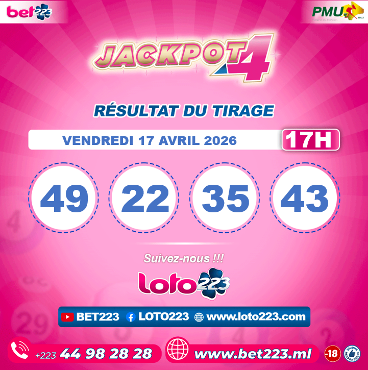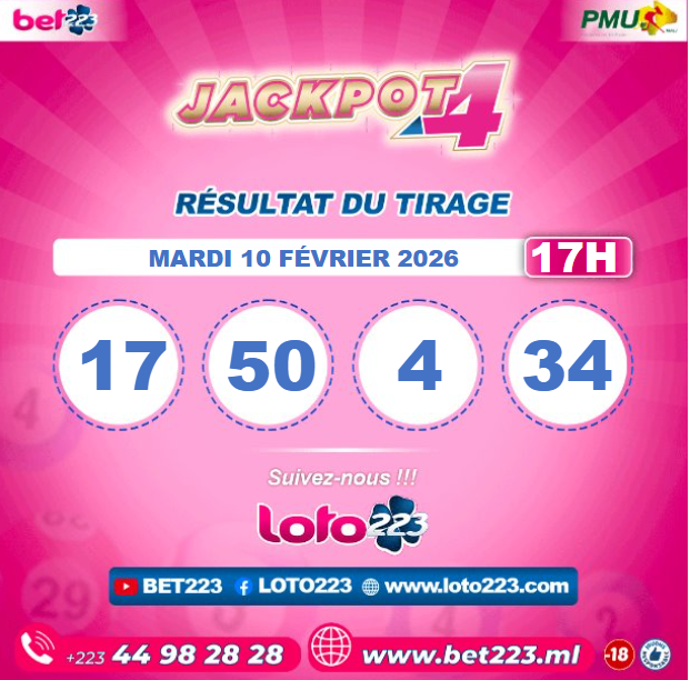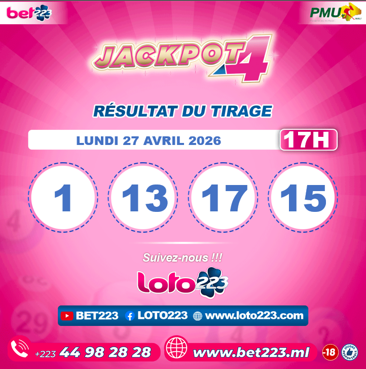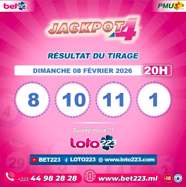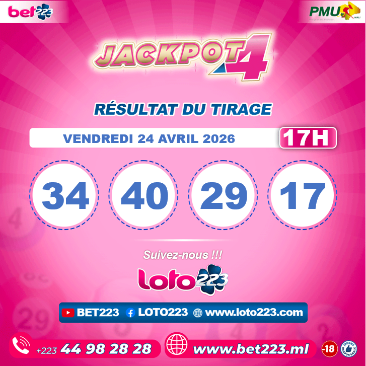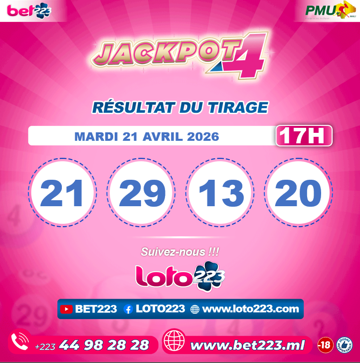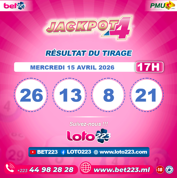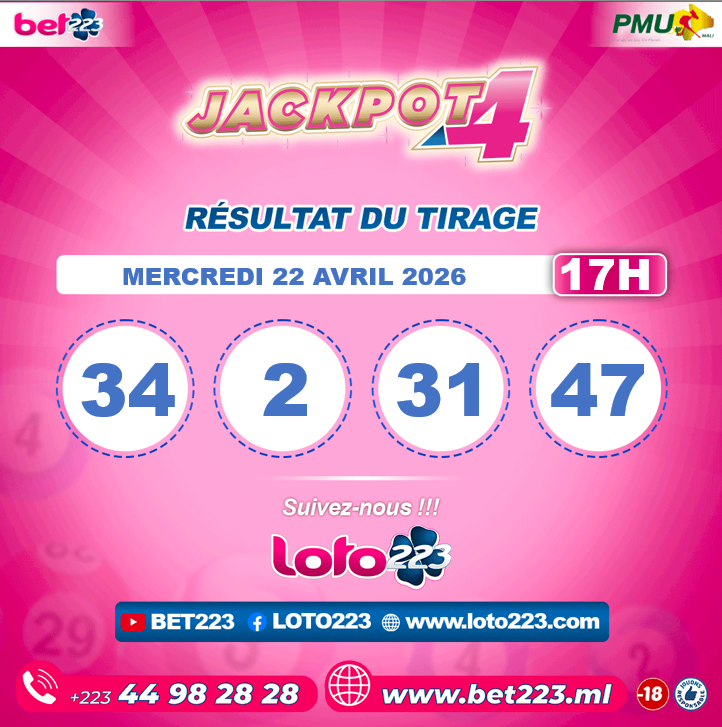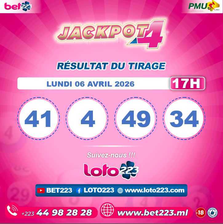Le jeu Jackpot4 est disponibles uniquement au Mali chez BET 223