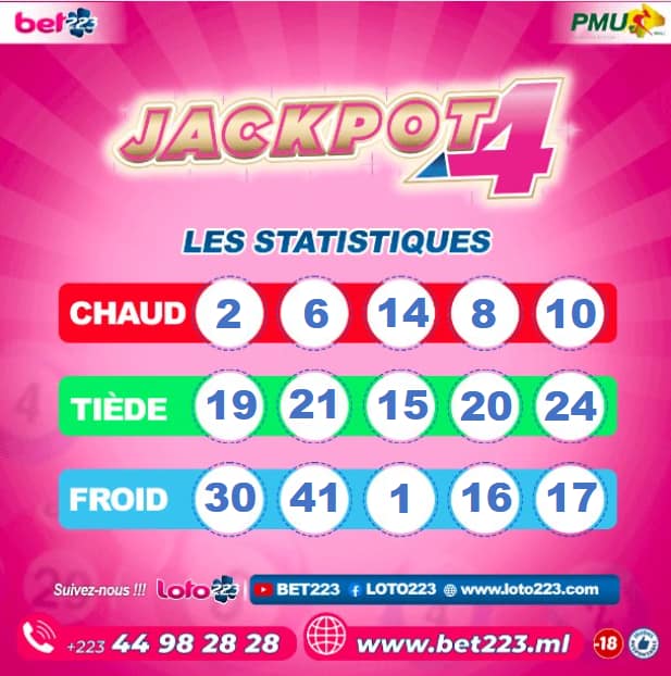 🔥 Basé sur les résultats officiels du Jackpot 4 Mali