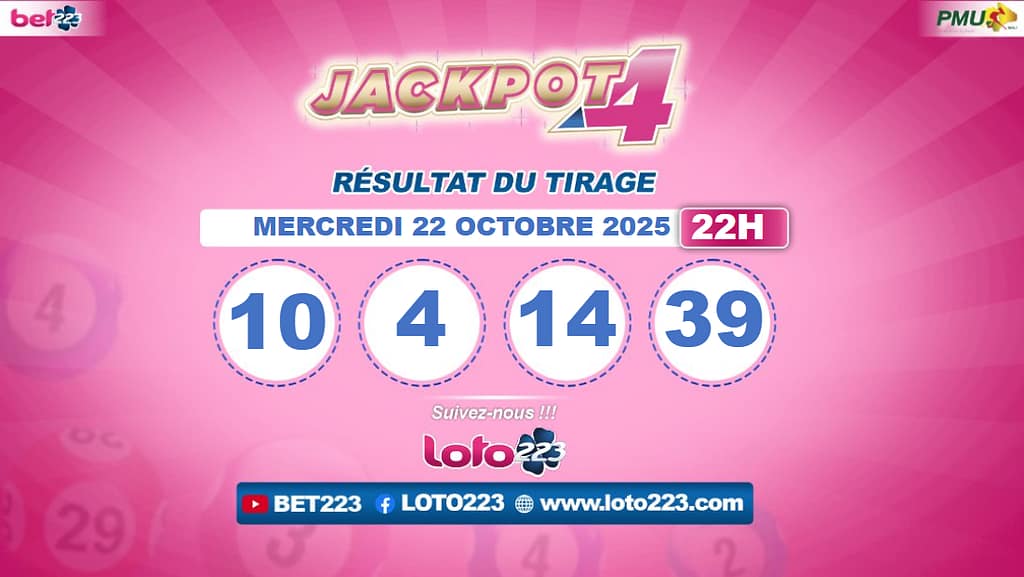 Les tirages du « Jackpot 4 » sont liés du lundi au Samedi de 00h, 11h, 13h, 15h, 20h et 22h.