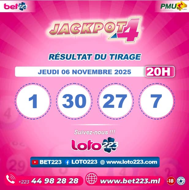 Les tirages du « Jackpot 4 » sont liés du lundi au Samedi de 00h, 11h, 13h, 15h, 20h et 22h.
