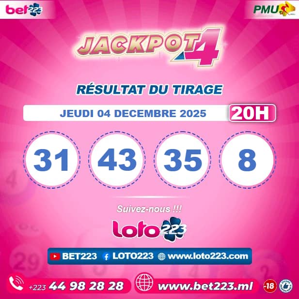 Les tirages du « Jackpot 4 » sont liés du lundi au Samedi de 00h, 11h, 13h, 15h, 20h et 22h.
