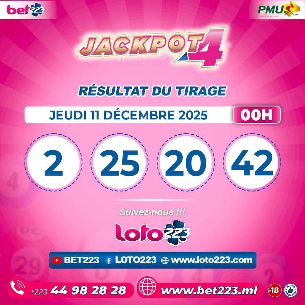 Les tirages du « Jackpot 4 » sont liés du lundi au Samedi de 00h, 11h, 13h, 15h, 20h et 22h.