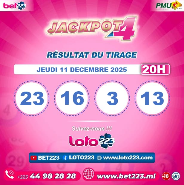Les tirages du « Jackpot 4 » sont liés du lundi au Samedi de 00h, 11h, 13h, 15h, 20h et 22h.