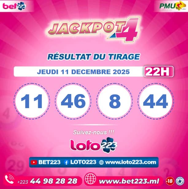 Les tirages du « Jackpot 4 » sont liés du lundi au Samedi de 00h, 11h, 13h, 15h, 20h et 22h.