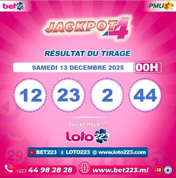 Les tirages du « Jackpot 4 » sont liés du lundi au Samedi de 00h, 11h, 13h, 15h, 20h et 22h.