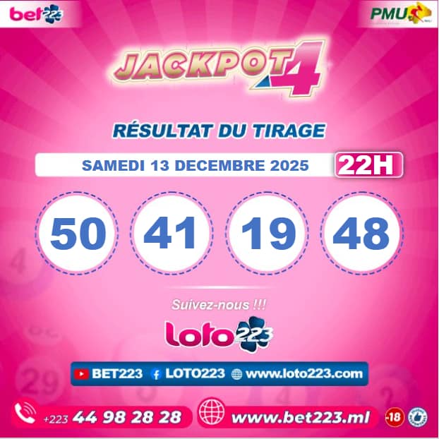 Les tirages du « Jackpot 4 » sont liés du lundi au Samedi de 00h, 11h, 13h, 15h, 20h et 22h.