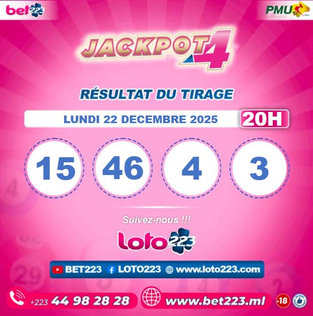 Les tirages du « Jackpot 4 » sont liés du lundi au Samedi de 00h, 11h, 13h, 15h, 20h et 22h.