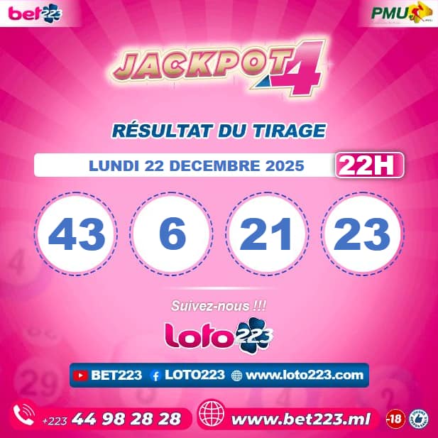 Les tirages du « Jackpot 4 » sont liés du lundi au Samedi de 00h, 11h, 13h, 15h, 20h et 22h.