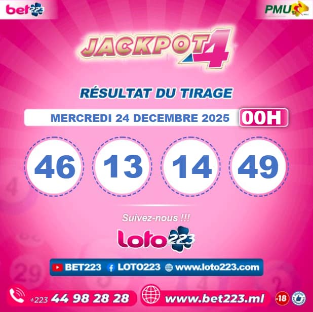 Les tirages du « Jackpot 4 » sont liés du lundi au Samedi de 00h, 11h, 13h, 15h, 20h et 22h.