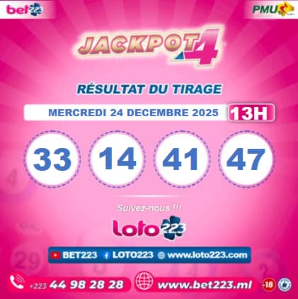 Les tirages du « Jackpot 4 » sont liés du lundi au Samedi de 00h, 11h, 13h, 15h, 20h et 22h.