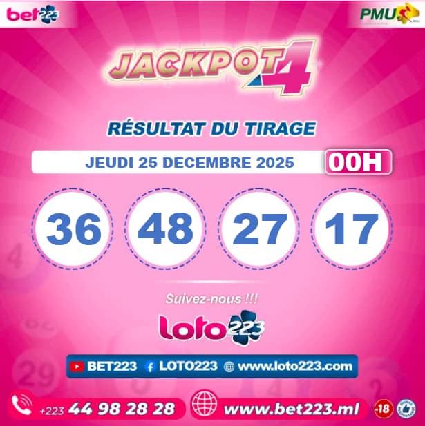 Les tirages du « Jackpot 4 » sont liés du lundi au Samedi de 00h, 11h, 13h, 15h, 20h et 22h.