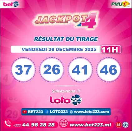 Les tirages du « Jackpot 4 » sont liés du lundi au Samedi de 00h, 11h, 13h, 15h, 20h et 22h.