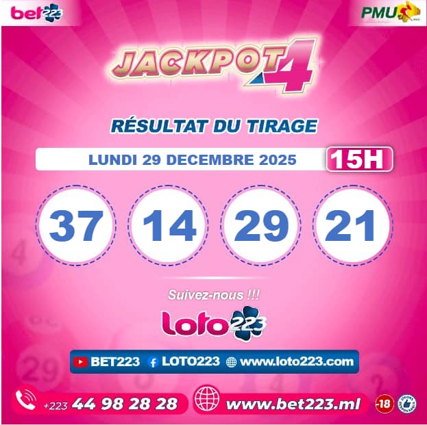 Les tirages du « Jackpot 4 » sont liés du lundi au Samedi de 00h, 11h, 13h, 15h, 20h et 22h.