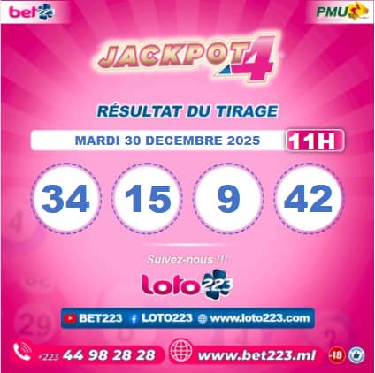 Les tirages du « Jackpot 4 » sont liés du lundi au Samedi de 00h, 11h, 13h, 15h, 20h et 22h.