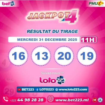 Les tirages du « Jackpot 4 » sont liés du lundi au Samedi de 00h, 11h, 13h, 15h, 20h et 22h.