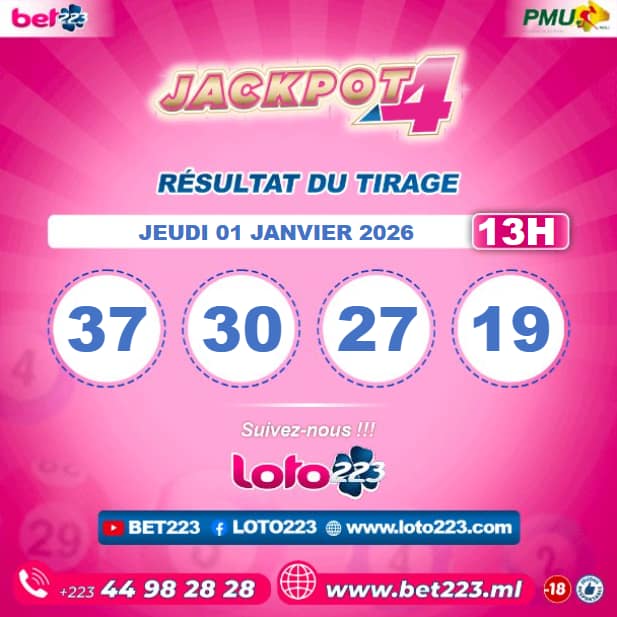 Les tirages du « Jackpot 4 » sont liés du lundi au Samedi de 00h, 11h, 13h, 15h, 20h et 22h.