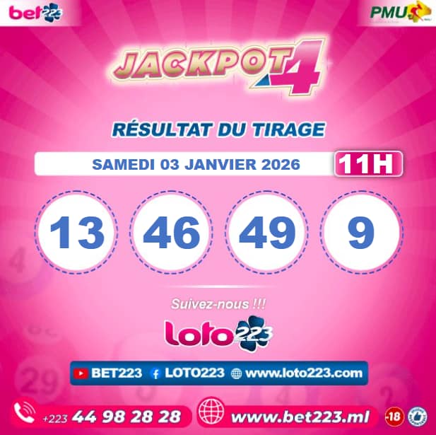 Les tirages du « Jackpot 4 » sont liés du lundi au Samedi de 00h, 11h, 13h, 15h, 20h et 22h.