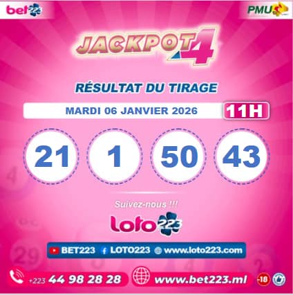 Les tirages du « Jackpot 4 » sont liés du lundi au Samedi de 00h, 11h, 13h, 15h, 20h et 22h.