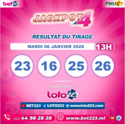 Les tirages du « Jackpot 4 » sont liés du lundi au Samedi de 00h, 11h, 13h, 15h, 20h et 22h.