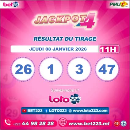 Les tirages du « Jackpot 4 » sont liés du lundi au Samedi de 00h, 11h, 13h, 15h, 20h et 22h.