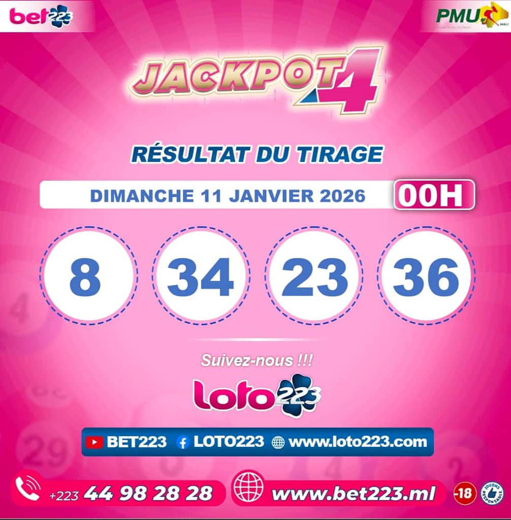 Les tirages du « Jackpot 4 » sont liés du lundi au Samedi de 00h, 11h, 13h, 15h, 20h et 22h.