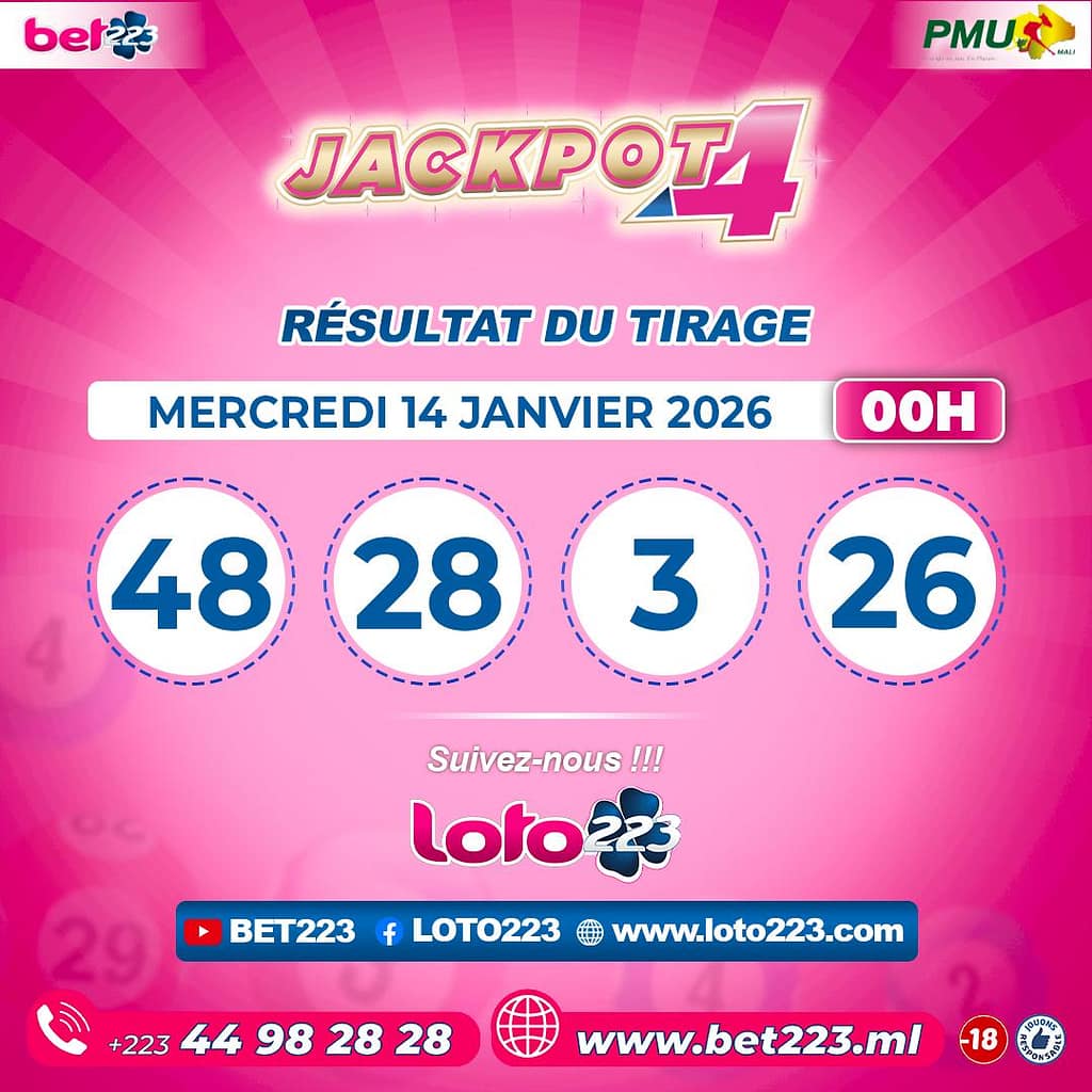 Les tirages du « Jackpot 4 » sont liés du lundi au Samedi de 00h, 11h, 13h, 15h, 20h et 22h.