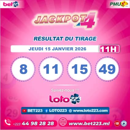 Les tirages du « Jackpot 4 » sont liés du lundi au Samedi de 00h, 11h, 13h, 15h, 20h et 22h.