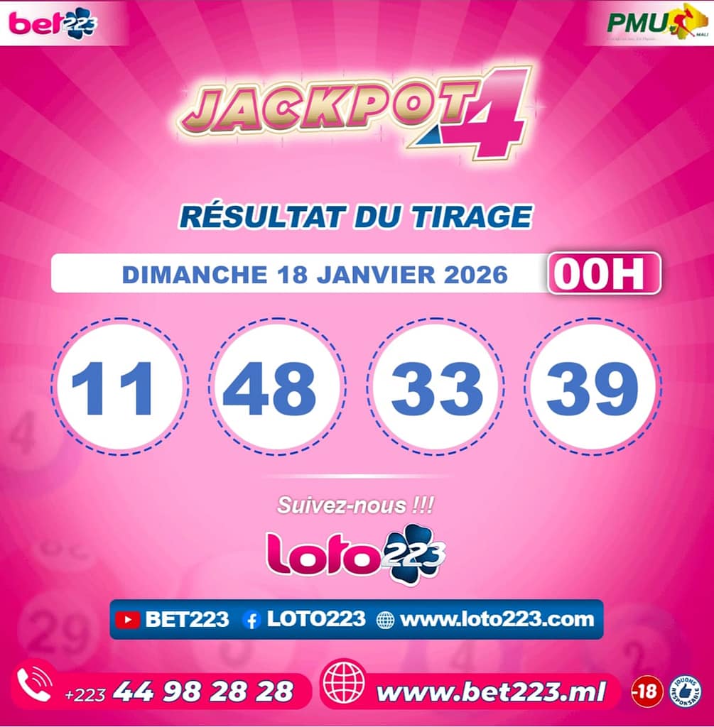 Les tirages du « Jackpot 4 » sont liés du lundi au Samedi de 00h, 11h, 13h, 15h, 20h et 22h.