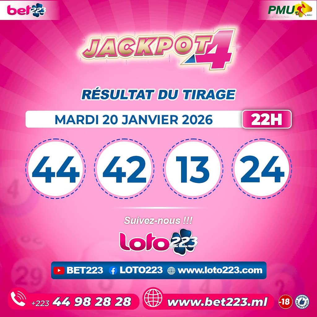 Les tirages du « Jackpot 4 » sont liés du lundi au Samedi de 00h, 11h, 13h, 15h, 20h et 22h.