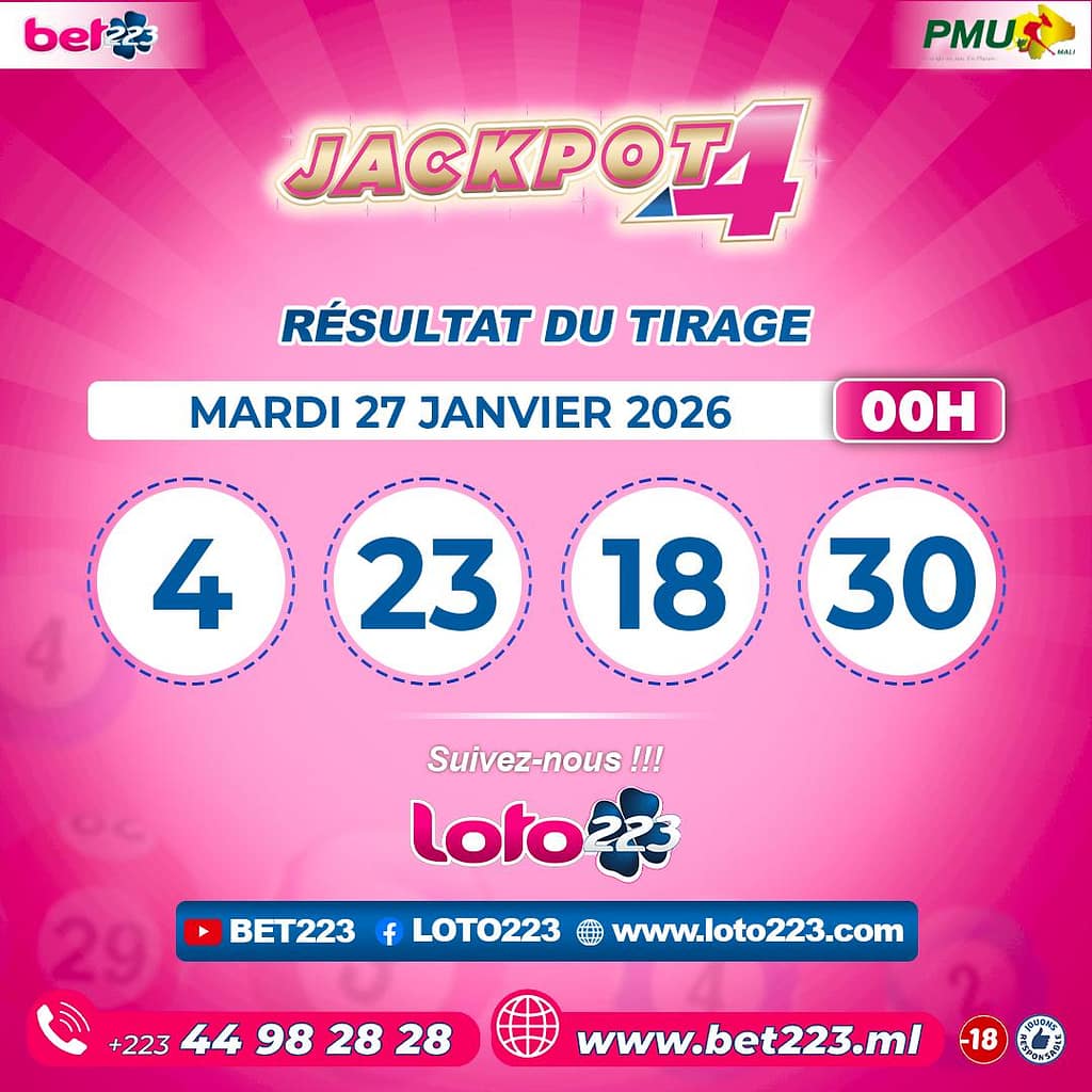 Les tirages du « Jackpot 4 » sont liés du lundi au Samedi de 00h, 11h, 13h, 15h, 20h et 22h.