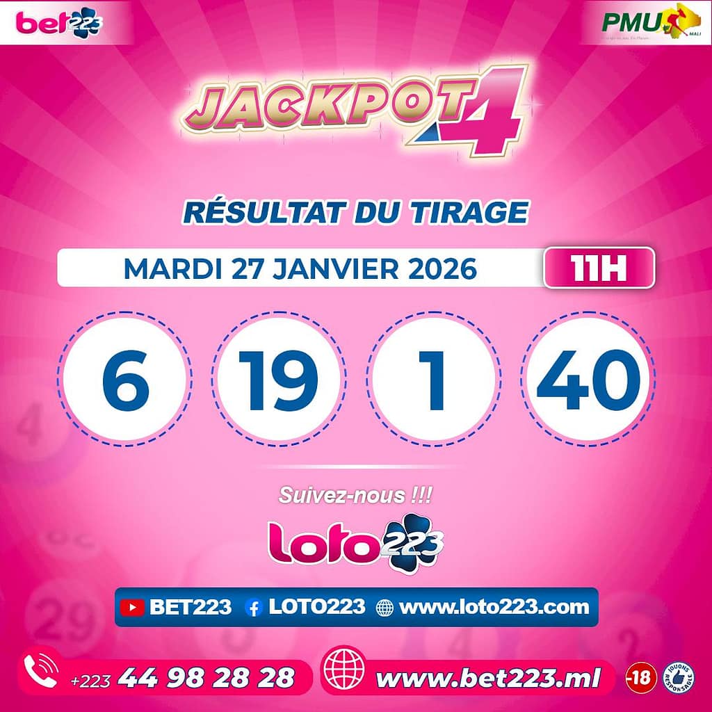Les tirages du « Jackpot 4 » sont liés du lundi au Samedi de 00h, 11h, 13h, 15h, 20h et 22h.