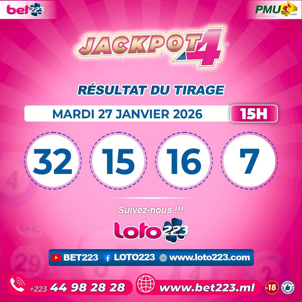 Les tirages du « Jackpot 4 » sont liés du lundi au Samedi de 00h, 11h, 13h, 15h, 20h et 22h.