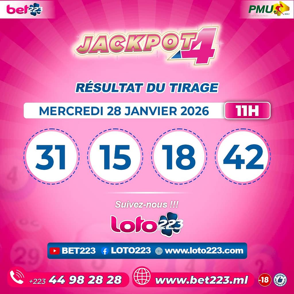 Les tirages du « Jackpot 4 » sont liés du lundi au Samedi de 00h, 11h, 13h, 15h, 20h et 22h.