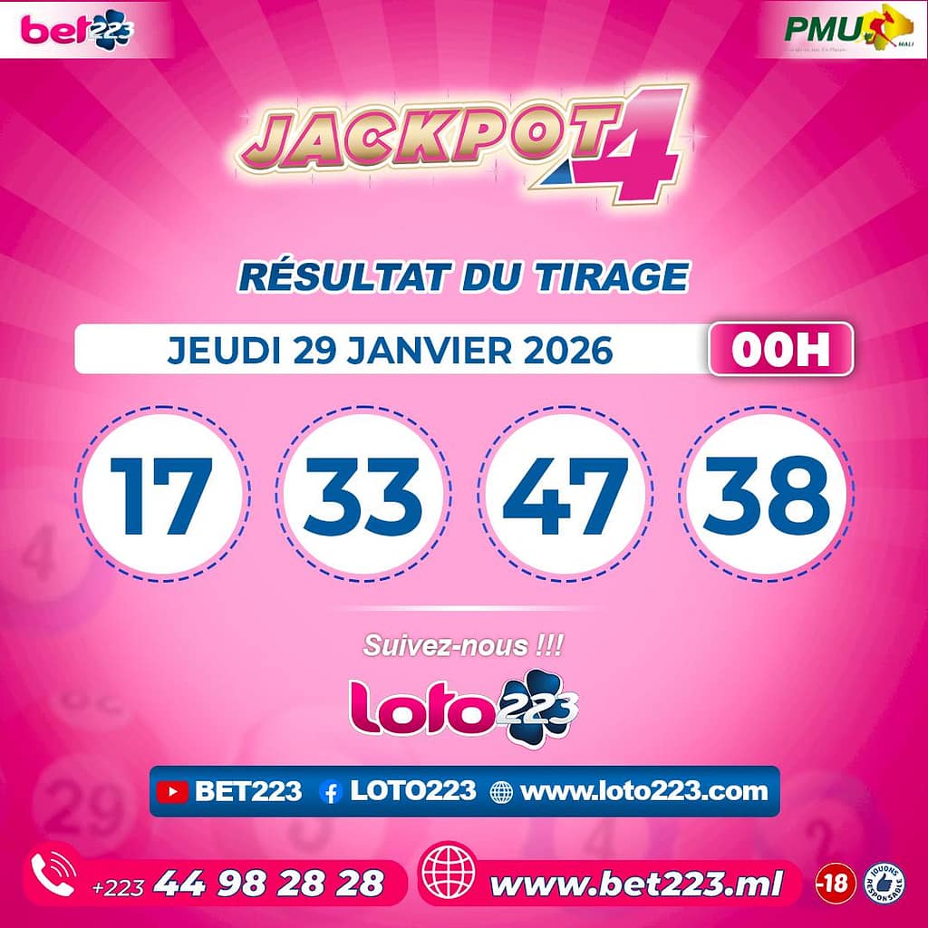 Les tirages du « Jackpot 4 » sont liés du lundi au Samedi de 00h, 11h, 13h, 15h, 20h et 22h.