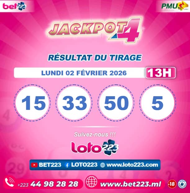 Les tirages du « Jackpot 4 » sont liés du lundi au Samedi de 00h, 11h, 13h, 15h, 20h et 22h.