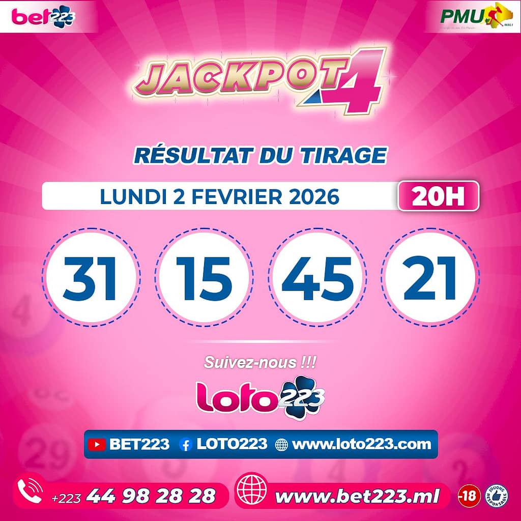 Les tirages du « Jackpot 4 » sont liés du lundi au Samedi de 00h, 11h, 13h, 15h, 20h et 22h.