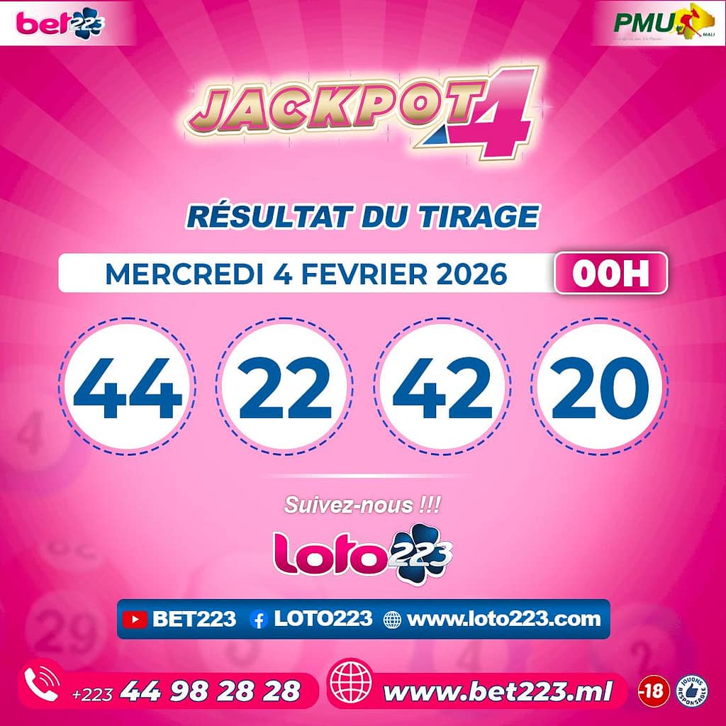 Les tirages du « Jackpot 4 » sont liés du lundi au Samedi de 00h, 11h, 13h, 15h, 20h et 22h.