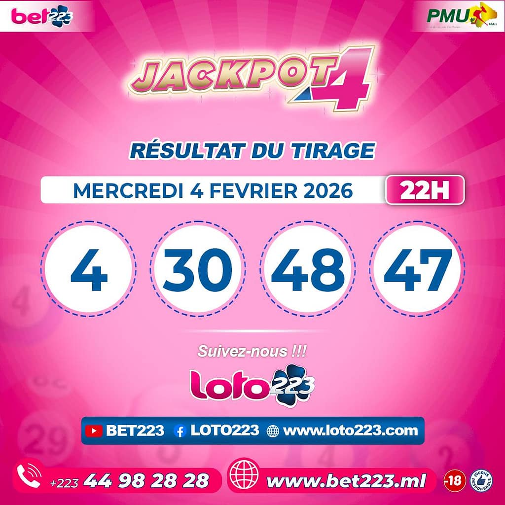 Les tirages du « Jackpot 4 » sont liés du lundi au Samedi de 00h, 11h, 13h, 15h, 20h et 22h.