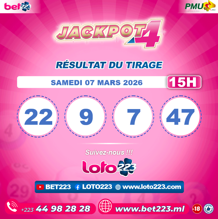 JACKPOT 4 : Tirage de 15h du 07 Mars 2026