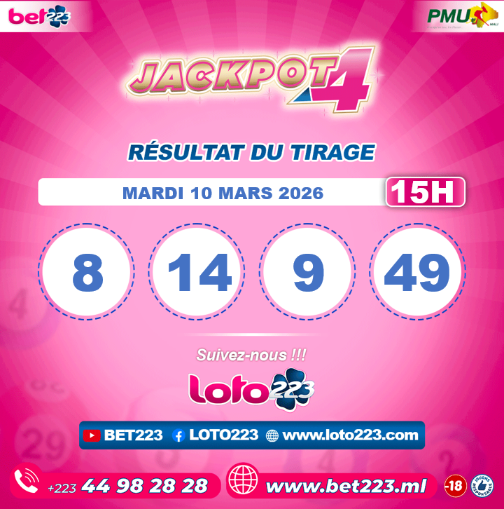 JACKPOT 4 : Tirage de 15h du 10 Mars 2026