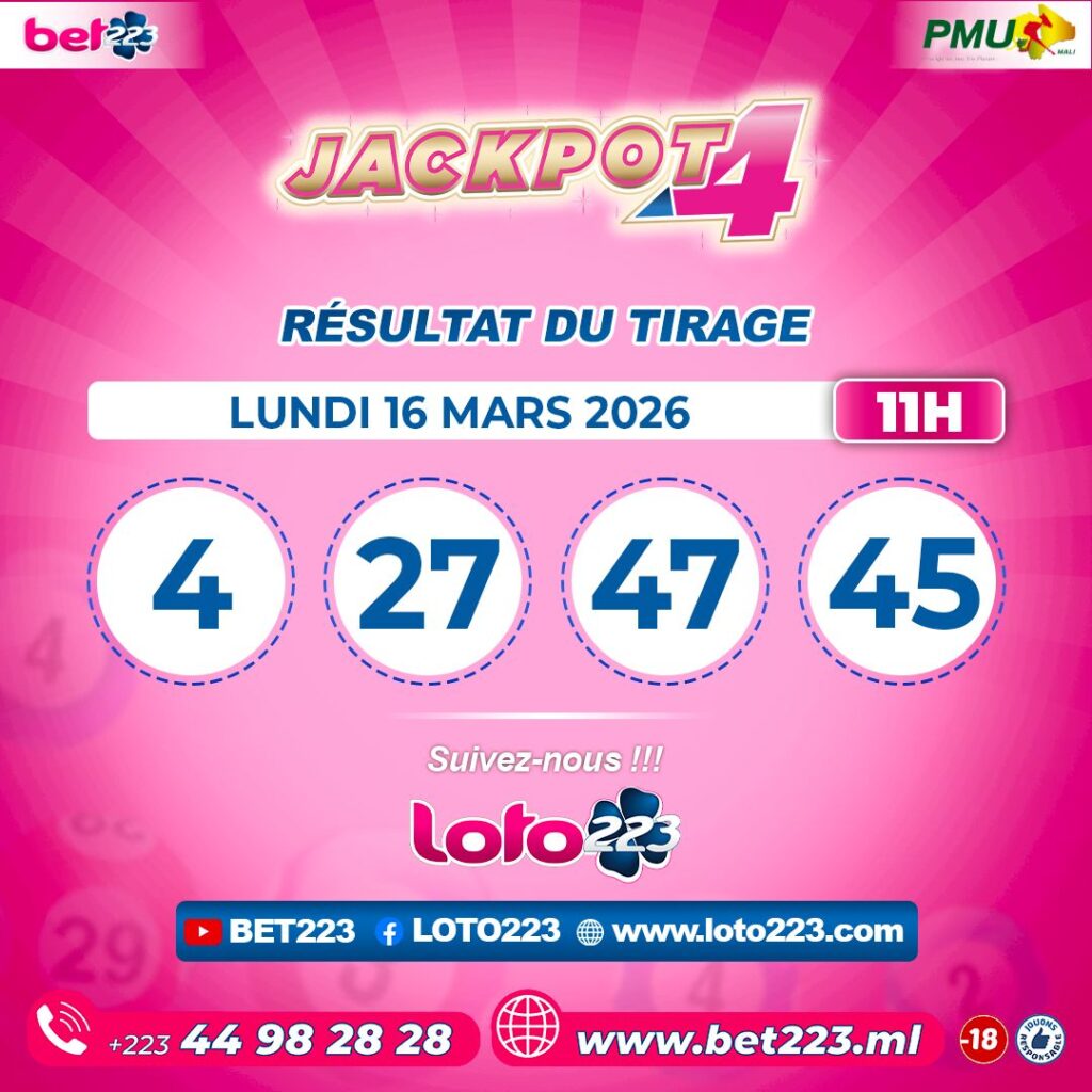JACKPOT 4 : Tirage de 11h du 16 Mars 2026