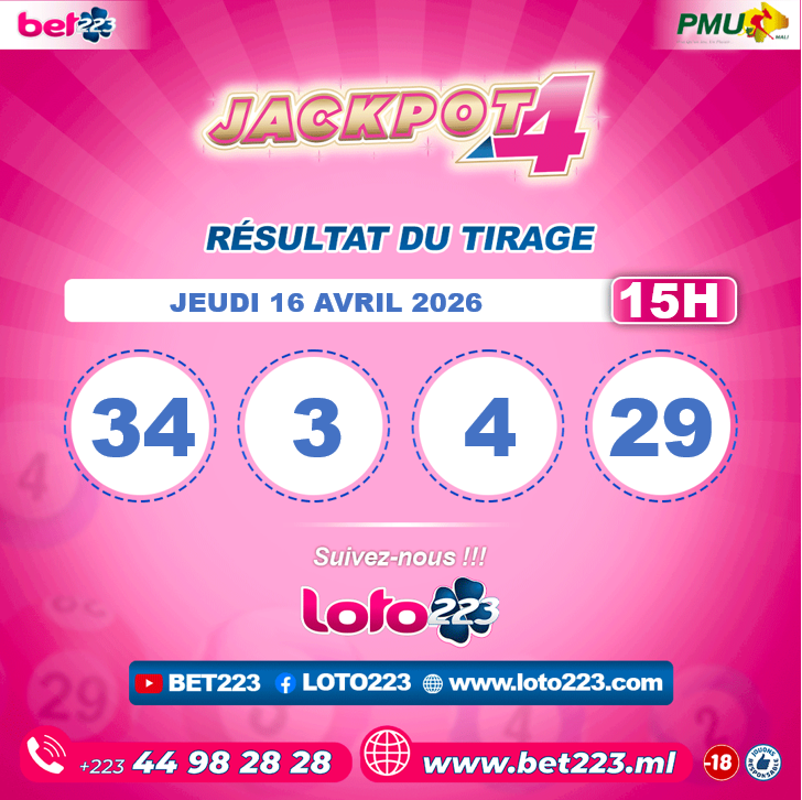 Les tirages du « Jackpot 4 » sont liés du lundi au Samedi de 00h, 11h, 13h, 15h, 17h, 20h et 22h et les Dimanches 20H, 22H, 00H
