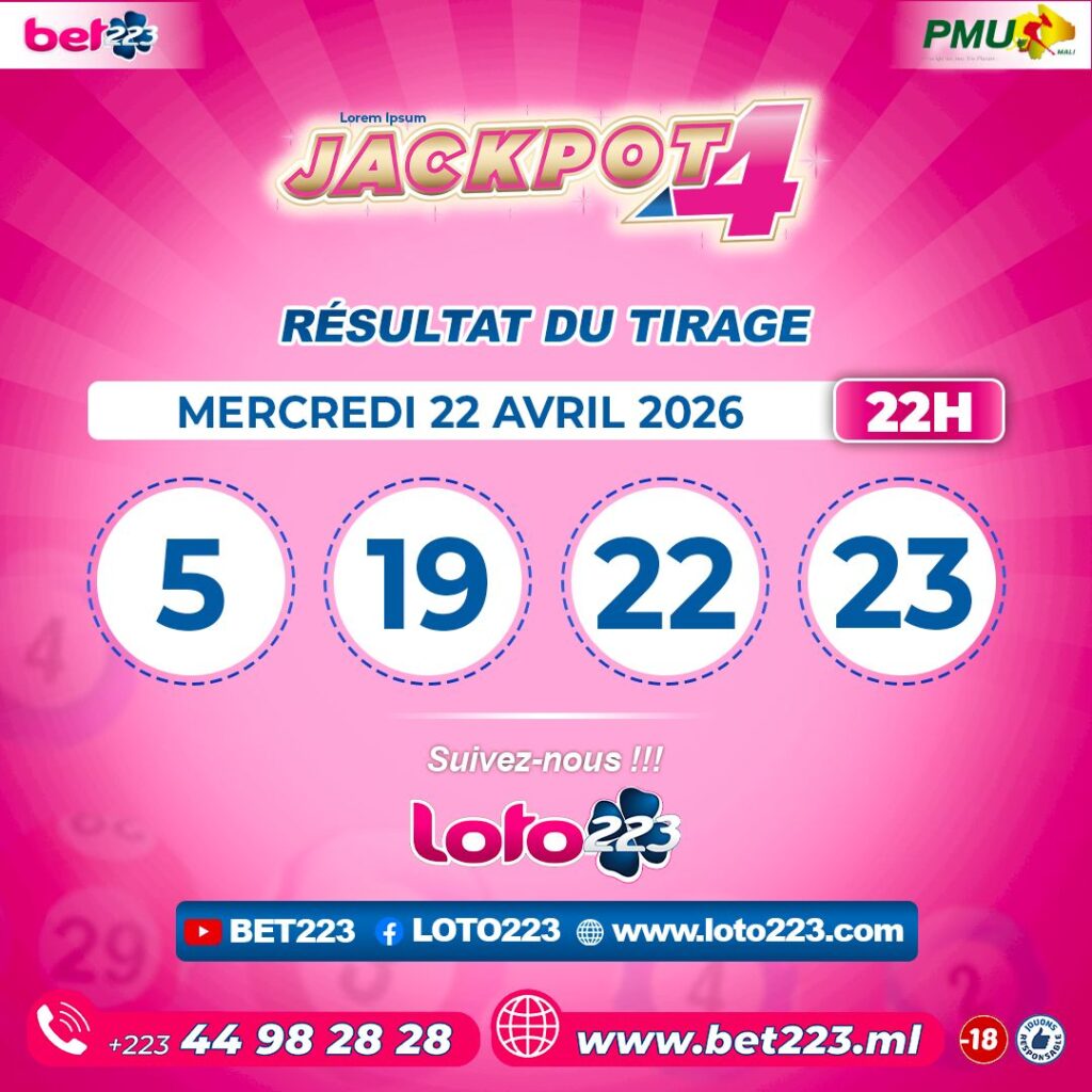 Les tirages du « Jackpot 4 » sont liés du lundi au Samedi de 00h, 11h, 13h, 15h, 17h, 20h et 22h et les Dimanches 20H, 22H, 00H