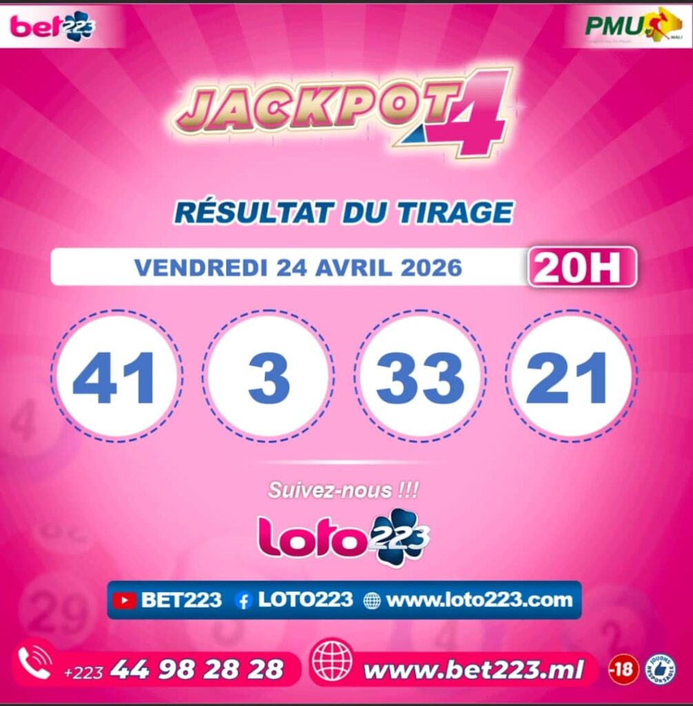 JACKPOT 4 : Tirage de 20h du 24 Avril 2026