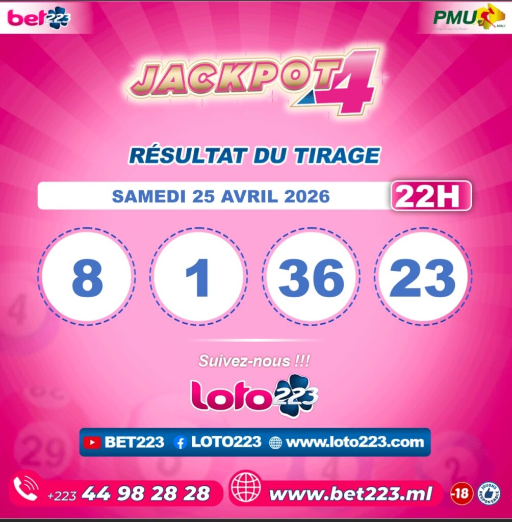 Les tirages du « Jackpot 4 » sont liés du lundi au Samedi de 00h, 11h, 13h, 15h, 17h, 20h et 22h et les Dimanches 20H, 22H, 00H