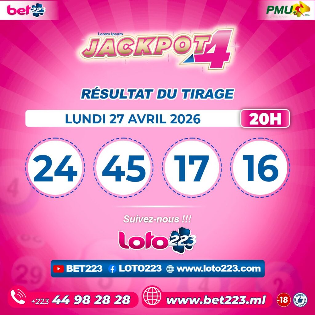 Les tirages du « Jackpot 4 » sont liés du lundi au Samedi de 00h, 11h, 13h, 15h, 17h, 20h et 22h et les Dimanches 20H, 22H, 00H