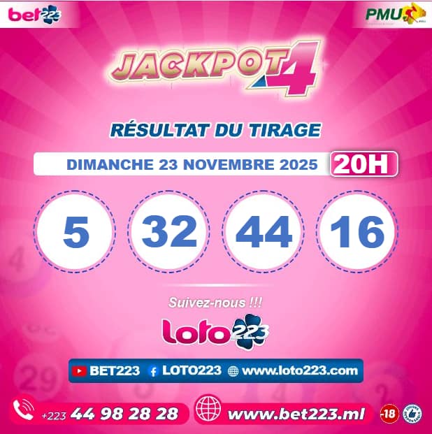 Les tirages du « Jackpot 4 » sont liés du lundi au Samedi de 00h, 11h, 13h, 15h, 20h et 22h.