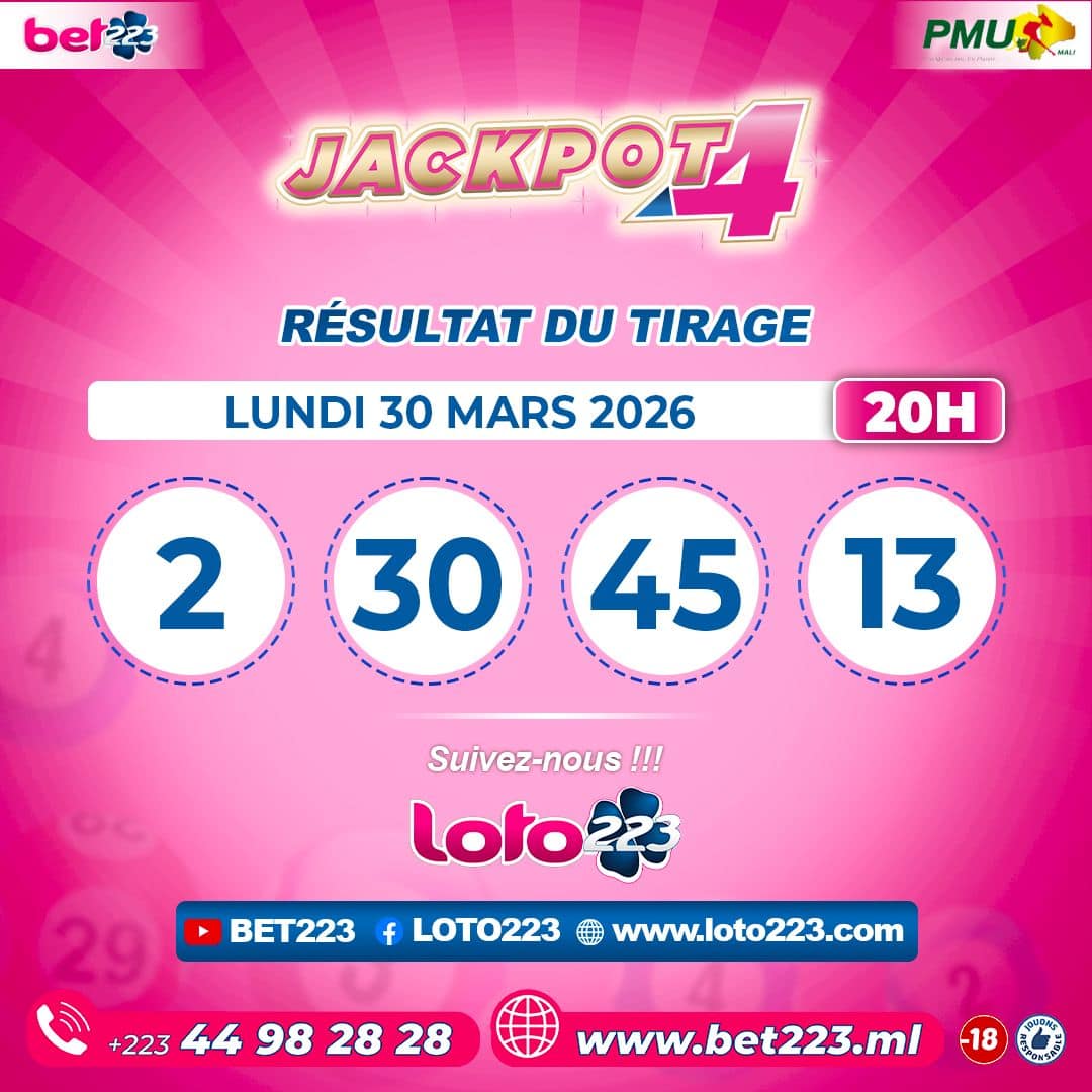 45-14-47-21 les résultats sont publiés sur tous les canaux. Vous pouvez également vous rendre dans un point de vente pour plus d’informations. Les tirages du « Jackpot 4 » sont liés du lundi au Samedi de 00h, 11h, 13h, 15h, 17h,…