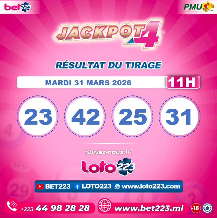 JACKPOT 4 : Tirage de 17h du 31 Mars 2026
